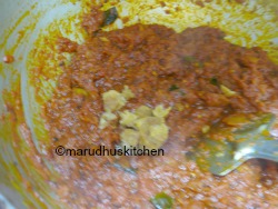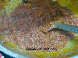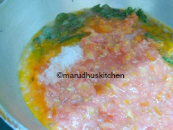 4.Then curry leaves and then pureed tomatoes with salt.