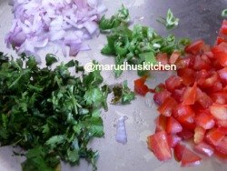 - Then add onion,tomato,green chillies,coriander,lemon juice and mix it.