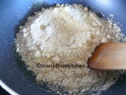 7.Bring flame to low and add the powder and when thick.