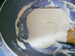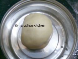 10.Transfer it to a bowl and stir well with a spoon and it will thicken well and when slightly cool use your hands to knead the dough to become smooth and pliable.