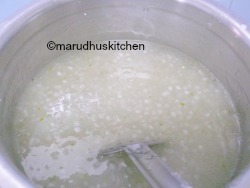 - Drain the soaked sago from water and add this to boiling water.