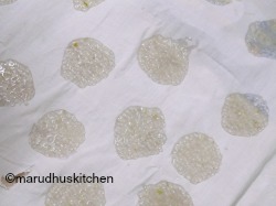 10.Now spread a well washed dhothi or cotton cloth and pour these in circles.