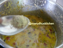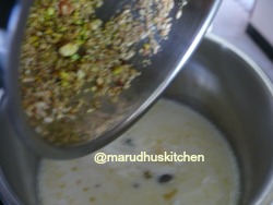 6.When milk boils add the ground mix and cook with a closed lid for 20 minutes in medium flame.