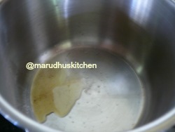 4.Now add the remaining ghee to a vessel heat up and add milk water mixture.