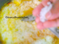 7.When veggies are cooked add dal-rice mixture to this.