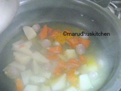 - Now add some water and boil veggies in a pan by adding turmeric.
