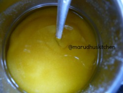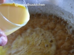 1.Grind palm sugar to powder and boil it with water and filter it to remove impurities and keep aside.