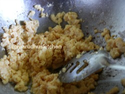 3.In a kadai add ghee and fry the khoya in it.