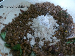 6.When it is dry switch off and add coconut.