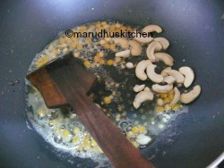 4.Add cashews too along with dals and when golden add ground mixture.