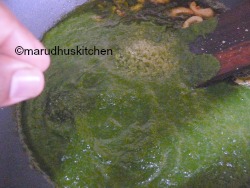 9.Now pour the coriander mixture and mix well.