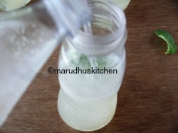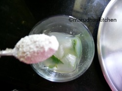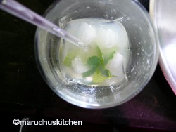 - Take a glass add salt,mint leaves,lemon juice ,powdered sugar,ice-cubes and mix thoroughly.