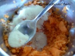 - Mix it and the add coconut powder to it.