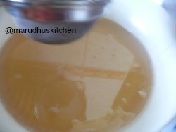 5.In between add sugar in a another pan with little water and just dissolve and add little lemon drops and then filter it and keep aside.