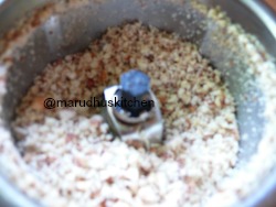 - Roast almond-cashew in little ghee and grind coarsely and keep ready.