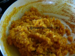 4.Nicely saute the mixture till raw-smell goes.