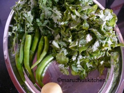 2.Wash the coriander and mint leaves thoroughly take both as given in the above measurements.