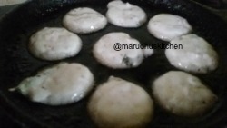 - Now heat up the paniyaram pan ,add little oil in each pockets and pour the batter.