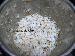 5.Switch off and when cool add to mixer and grind with coconut scrapping(add needed water when grinding).