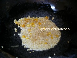- First add oil in a kadai when it heats up add urad dhal kadalaparuppu and when it is brown add onion,chillies and ginger.