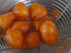 11.Fry till crisp,take out in a tissue and add this to sugar syrup.