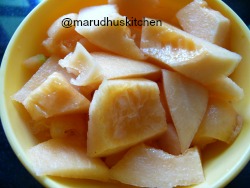 she enjoys making it and would always expect positive reception from others.Chilled muskmelon milkshake definitely tastes great and I use honey instead of sugar which blends well with melon and gives a luscious flavor.It is known to be mulam-pazham or kirni-palam in Tamil which has maximum water content in it..Honey added can be adjusted according to one’s taste and there is never a perfect rule for it.Now lets enjoy making this easy-peasy muskmelon milkshake.