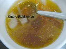 1.Take a bowl with two cups of water put jaggery into it and leave it for sometime till it dissolves.