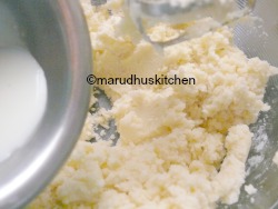 4.Now beat with a beater till fluffy and light by adding milk little by little.