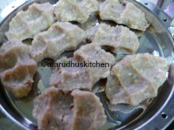 - Make every thing to pidi kozhukattai shape and keep it in a steamer or idli maker and cook for 10 minutes and delicious kozhukattai's are ready to be served.