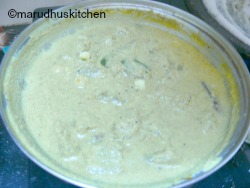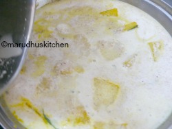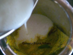 I add butter milk only after the gravy is completely warm in this way the mor kulambu will be creamy and prevents curdling.