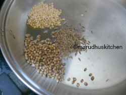 - Keep a kadai add oil then add urad dhal,cumin,jeera and saute till golden switch off and add coconut and chillies.