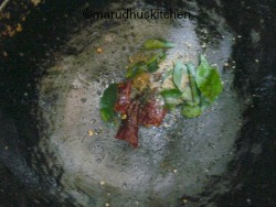 - Add mustard to splutter then add hing,curry leaves and chillies.