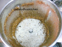 - Fry all these till golden,when cooled,grind to a coarse powder.