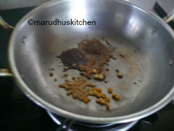 - Keep a kadai add oil when oil heats up add mustard,fenugreek,jeera,urad and bengal gram dhal.
