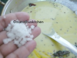 - Then add the buttermilk mixture to it and keep in sim flame for 5 minutes till all the rawness goes and switch off.