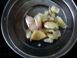 3.When mustard seeds splutter add crushed garlic and red-chillies and bring to low flame till the dhal becomes golden.