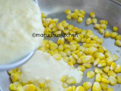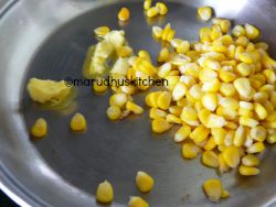 - Now keep a pan add butter and add left over corn and saute for a minute then add the ground mixture to it.