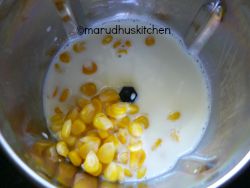 - Then add 3/4 th corn kernels in a mixer add milk and grind.