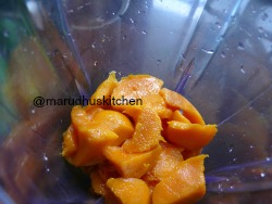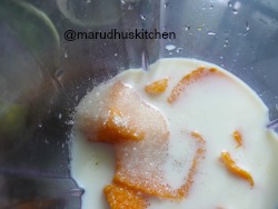 1.Take cut mangoes in a blender.