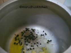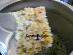 - Wash millet's(rice)and dhal,add a tbsp of ghee in a cooker and roast with cumin,pepper.