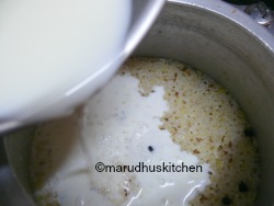 5.After that open the cooker add milk and mix.
