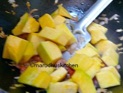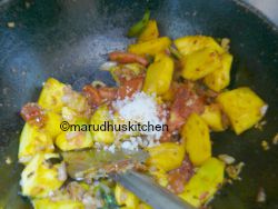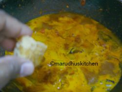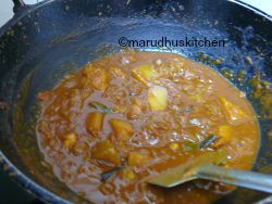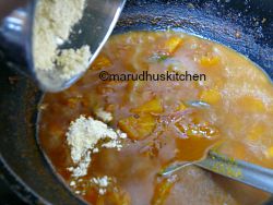- 9.Now add diluted tamarind extract and leave to boil till the vegetable is nicely cooked add the powder.