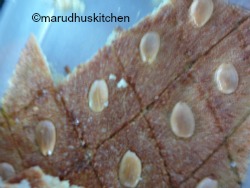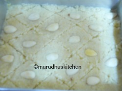 - Press badam piece in each diamonds,place it in the oven and bake for 20 minutes and when top layer is golden take out.