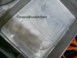 Take a suitable baking pan so that we can level it correctly not too thick(to cook properly),mine I have used a square pan you can use even a round one.