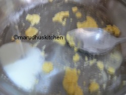 - Melt butter in a pan and add maida,stir for a minute without browning.