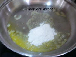 1.Melt butter in a pan and add maida,stir for a minute without browning.