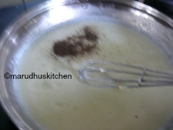- Turn on the stove and stir till it thickens,then add salt and pepper as per taste and switch off(transfer to a bowl).