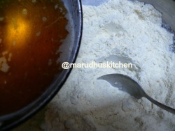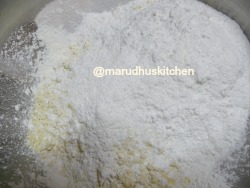 4.Now add the hot ghee slowly little by little.