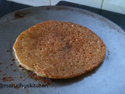 6.Heat a dosa pan pour the adai batter add little oil and cook on both sides.