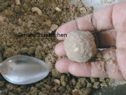- Now add hot ghee little by little as needed and nuts make balls when warm.